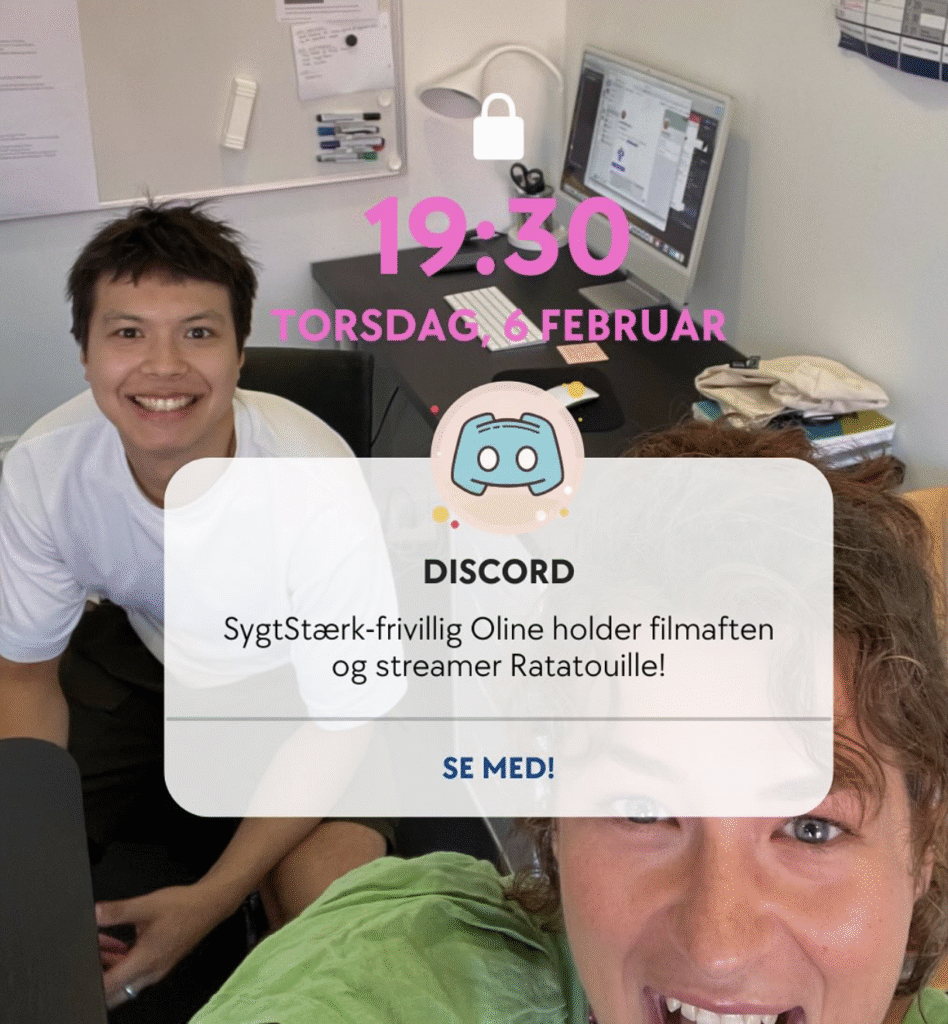 SygtStærks online fællesskab lever på Discord. Her kan du være en del af fællesskabet med andre unge, der lever med sygdom. Du kan være med, uanset om du vil dele dine tanker, søge råd eller bare hænge ud.